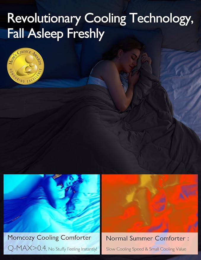 - 【OEKO Certified and Award-Winning Cool】 Momcozy won Mom's Choice Awards, Best of the Pump Awards, and Best of CNET with trusted products that make parenting more convenient and comfortable for families. Momcozy's cooling comforter excels as always. Meets OEKO standard 100 and achieves exceptional natural coolness with fibers five times finer than silk and advanced knitting technology, there is no any nanoparticles.