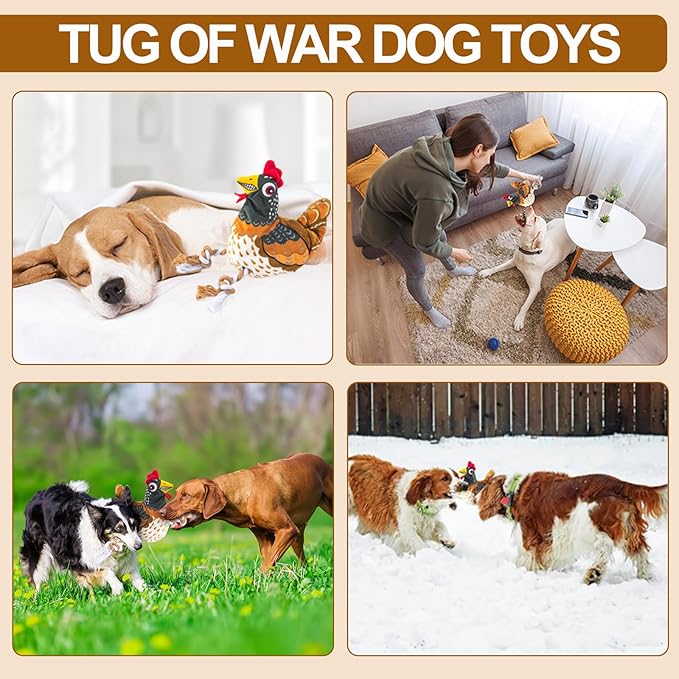 Squeaky Chicken Dog Toy with Pullable Egg β Full-Body Crinkle Plush & Rope Legs, Durable Interactive Toy for Small, Medium & Large Dogs