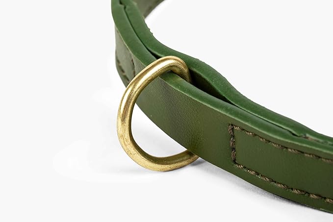Cactus Leather Dog Collar - Eco-Friendly, Stylish, Easy-to-Clean Pet Collar with Gold Hardware, D-Rings for Leash & ID Tag (Small, Green)
