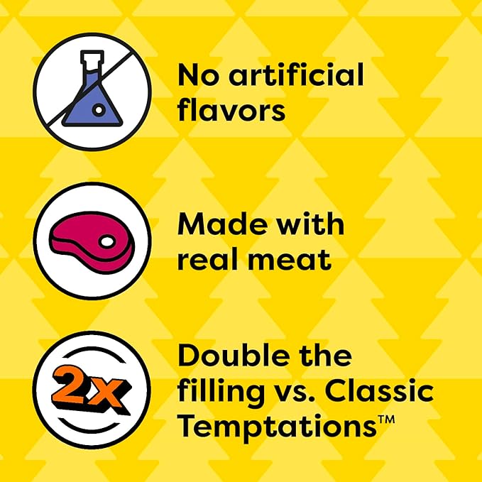 - Crunchy Outside, Creamy Inside: These irresistible cat treats have a visible soft cat treat center wrapped in a crunchy cat treat shell and have 2x more creamy filling than Temptations Classic Cat Treats