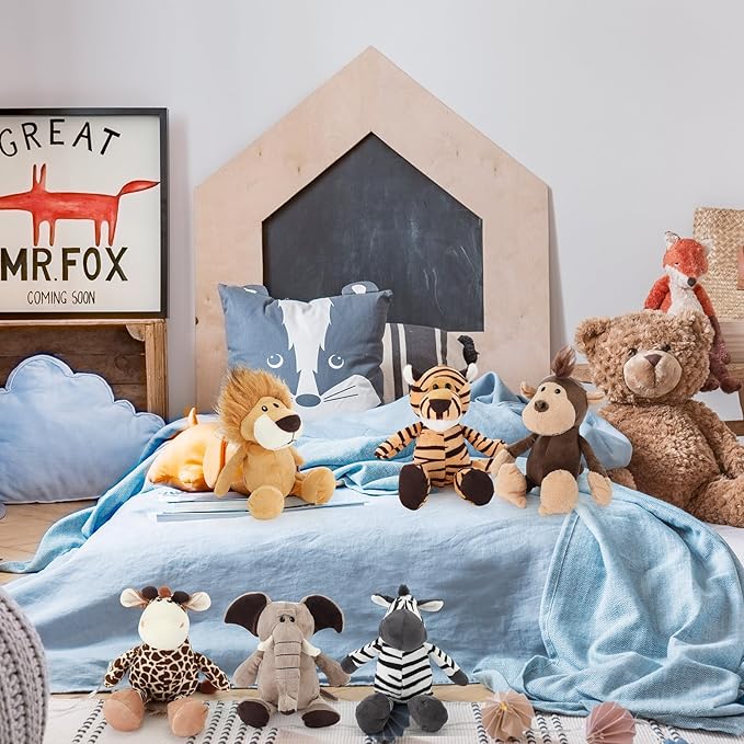 - Assorted Plush Animal Toys Set: you will receive 12 pieces cute plush animal for kids, including lion, elephant, zebra, giraffe, tiger and monkey; Sufficient quantity and various styles can easily meet your various needs; Note: The product is vacuum packed and needs to be placed for about 2 hours to recover
