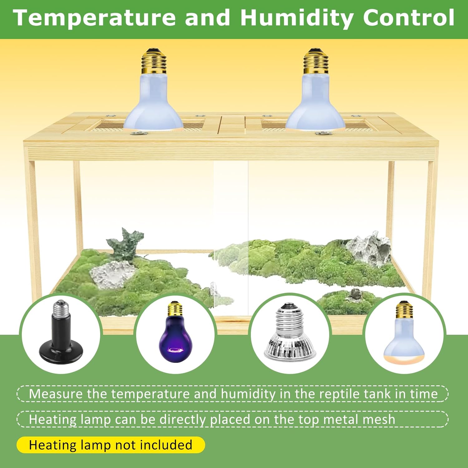 - Excellent ventilation: The bearded dragon tank ensures efficient airflow and ventilation. Equipped with a metal mesh roof that can be opened, along with a sliding door, it promotes optimal air circulation. The metal mesh allows direct placement of heating lamps (not included). Furthermore, it includes a hygrometer to monitor humidity and temperature, ensuring optimal conditions within the reptile terrarium tank