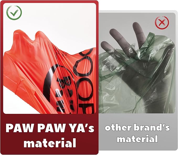 - DURABLE AND LEAK-PROOF DESIGN: PawPawYa pet waste bags are specially thickened to be highly tear-resistant and leak-proof, so you can clean up after your pet with confidence. Whether you’re out for a walk, at the park, or in your backyard, these bags are built to handle even the messiest jobs without leaking. They’re easy to pull off the roll and tie securely, ensuring a hassle-free experience. You don't have to worry about the dog bags for poop leaking or breaking, so you can use it with peace of mind every time.