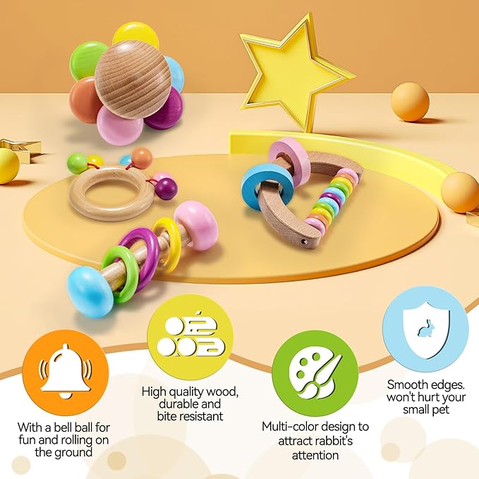 - Safe: Crafted from high-quality wood, our rabbit toys are finely polished for sturdiness and resistance to biting. With smooth edges designed to prevent harm to your small pets, they provide peace of mind while your furry friends play.