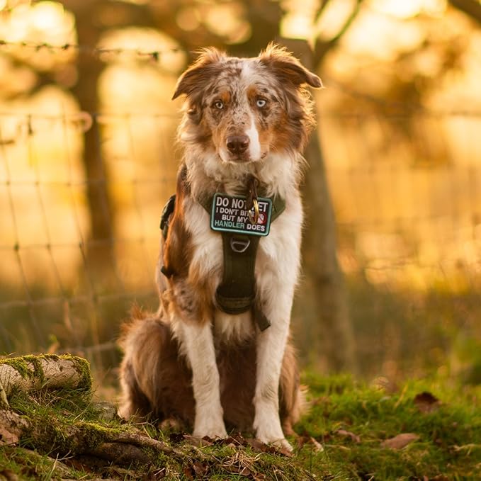 - Tactical Molle System: The hook&loop panels on both sides of the vest provide space for water bottles and outdoor supplies, while the magic tapes with large space can accommodate morale patches and personalized badges. Additionally, the removable middle slot can be used to store an ID card to identify your dog when needed