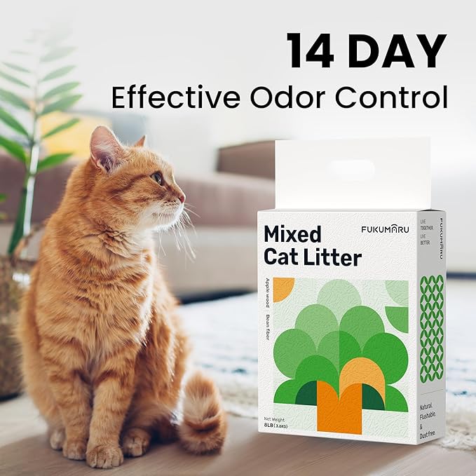 - Hypoallergenic & Low-Mess Formula – FUKUMARU's 99.9% dust-free blend of premium tofu fiber and apple wood minimizes tracking and airborne particles, creating a cleaner home for allergy-sensitive households. The dense, low-dust granules help support respiratory health while our clump-control texture keeps paws and floors tidy.