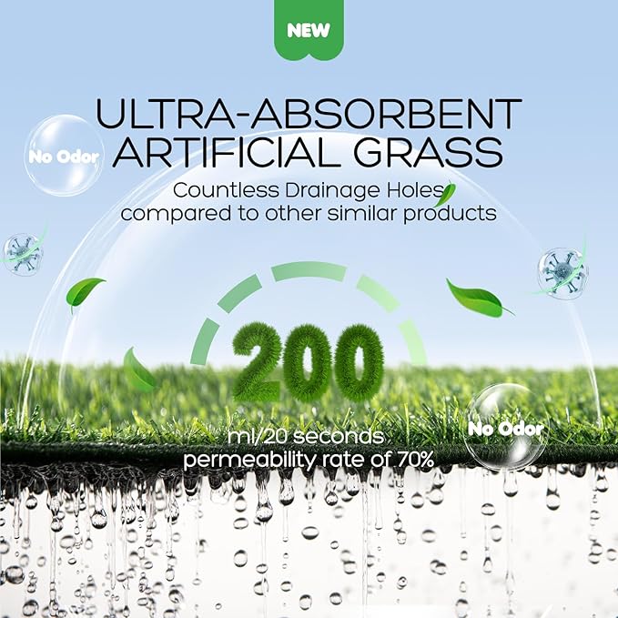 - DRAINAGE GRID: Between dog grass pad and dog potty pad, Atboma add a layer of grid, which makes dog turf won't always sit in urine. It reduces stink a lot.
