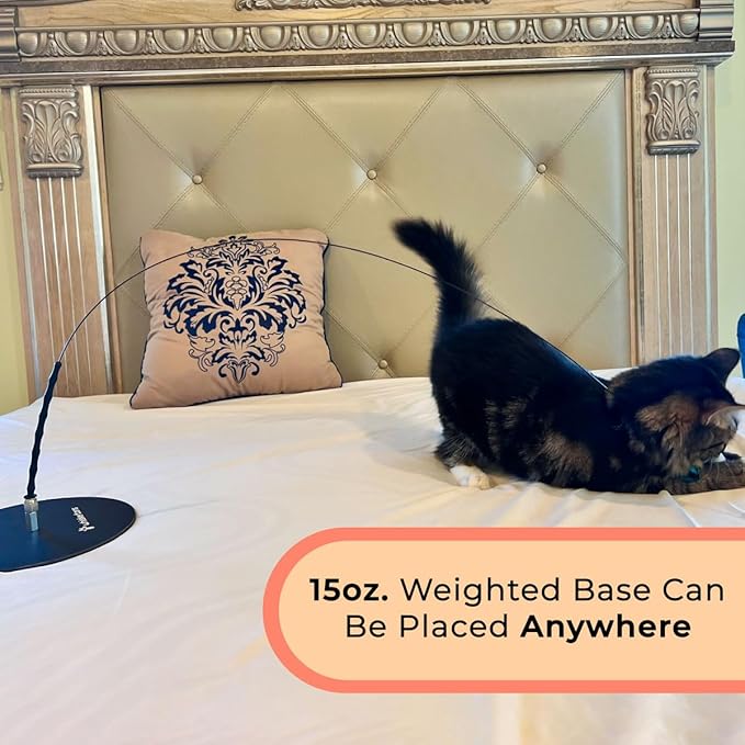 - DURABLE & EASY TO USE: The interactive cat feather toy includes a highly flexible rod and a strong suction cup base that can be attached horizontally or vertically to any flat, clean surface. It also includes a heavy-duty base that's perfect for carpets and more. The best part is that it requires no interaction from you, and your cat can play whenever they want.