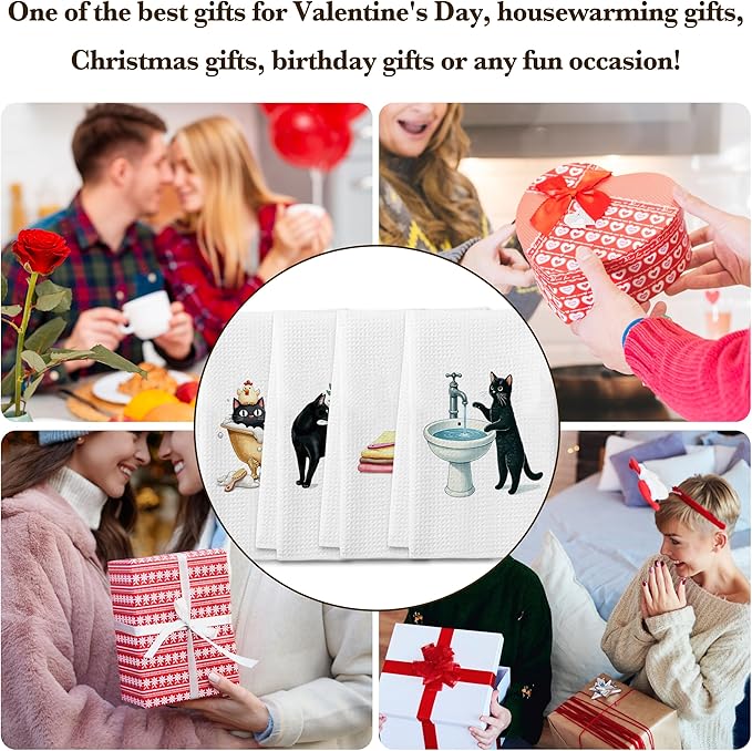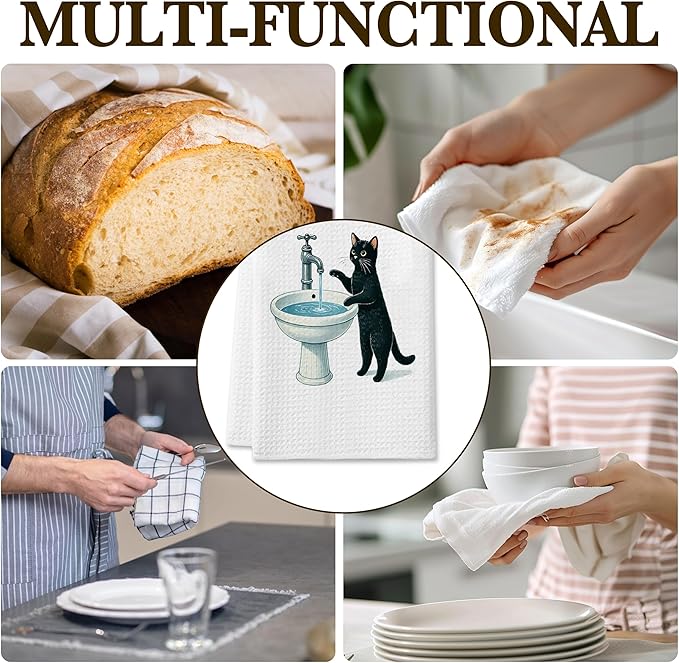 - 【Creative Design】Prepared as gifts for moms, relatives and friends, customers, bosses and cat lovers. The interesting design can brighten your mood. There is a decorative set of kitchen dish towels and hand towels, which can easily decorate your kitchen and bathroom.
