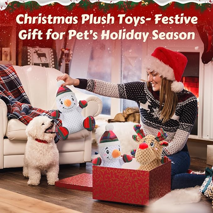 - Newget Dog Present: Embrace the festive spirit by gifting your furry friend a delightful surprise from Newget. Our toys collection including Santa Claus, snowman, and elk designs, offering a variety of combinations to suit your pet’s preferences. Each package includes a festive card, allowing you to pen your heartfelt wishes to your loved ones. This plush, squeaky toy is a present for your canine companion, promising endless joy and smiles for all.