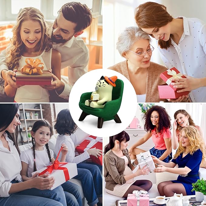 - Cute Desk Accessories: The dimensions of the cat are 0.95*1.25*1.6 inches, and the sofa measures 1.9*1.9*2 inches. This design adds charm and whimsy to your workspace