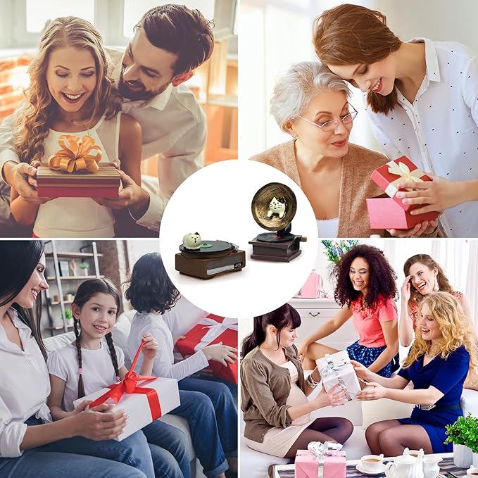 - Material: The cat vintage phonograph and cat record player figurine are made of high-quality resin material