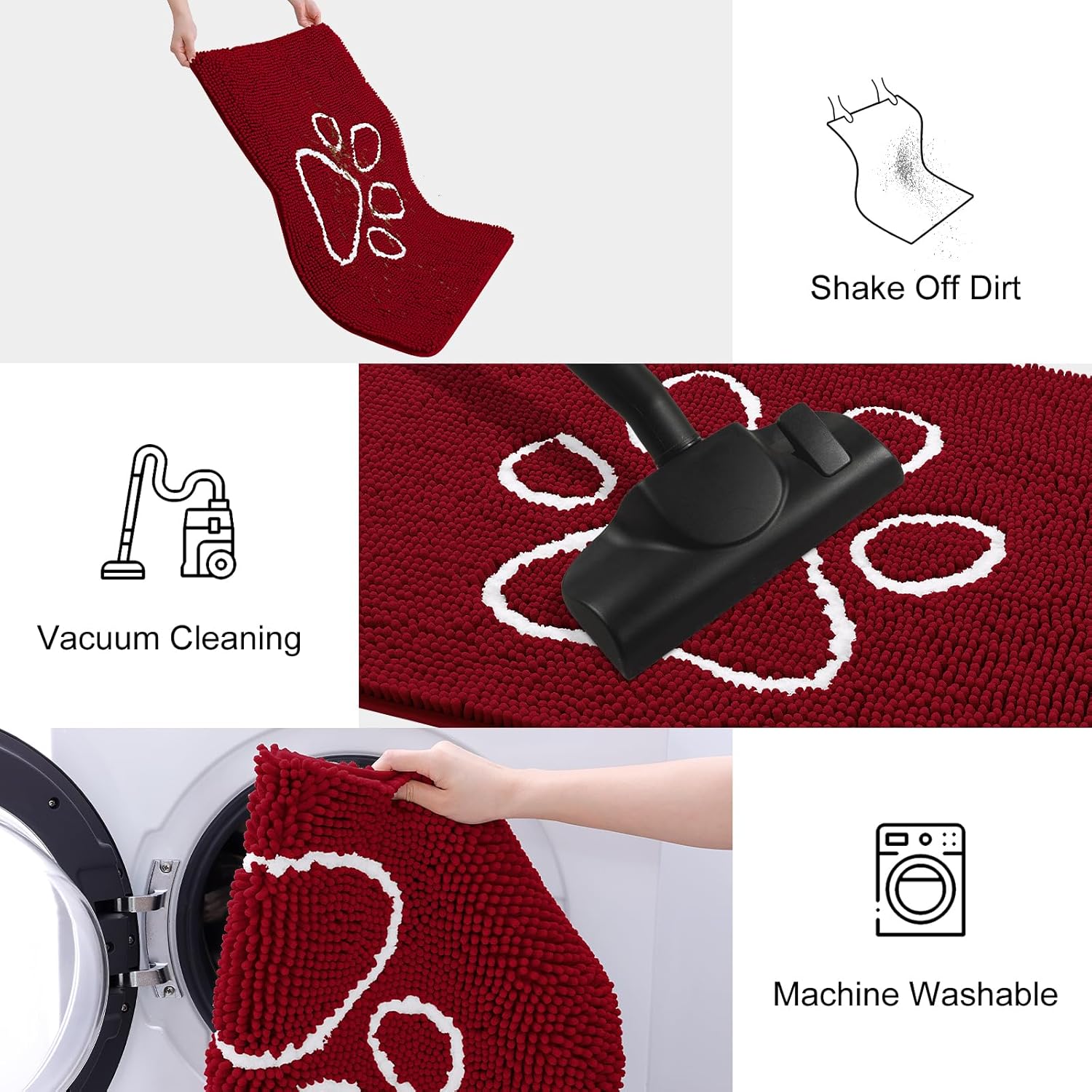 Smiry Dog Door Mat for Muddy Paws, Absorbent Dirt Trapper Non Slip Quick Dry Washable Chenille Mat for Mud Dogs, Entry Rug for Indoor and Outdoor (48x30 Inches, Red)