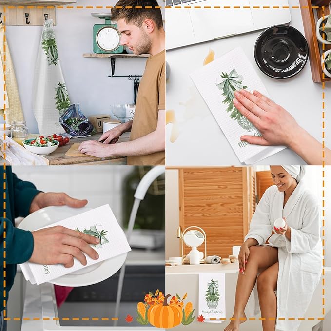 - Multi-Functional: These elegantly designed kitchen towels not only add a charming touch to your decor but also serve various functions, from drying dishes to wiping countertops, enhancing your kitchen's look.