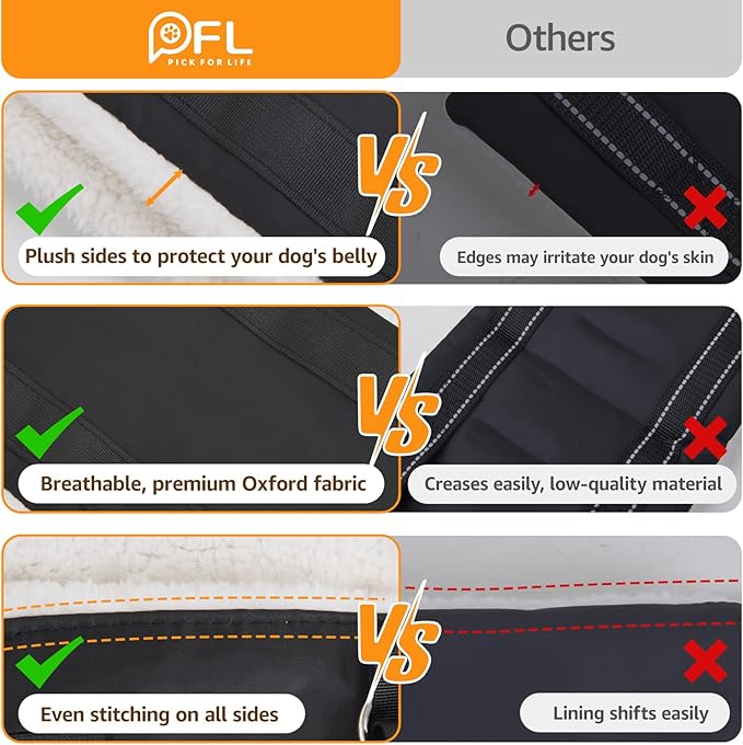 - Soft Durable : Inside contains synthetic fleece material,the dog mobility harness is very fluffy and comfortable for your dog to wear,won't chafe your pups underbelly. The belly sling carrier outer cove with oxford fabric, it is sturdy for large dog
