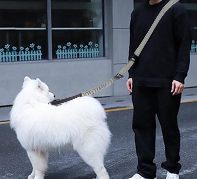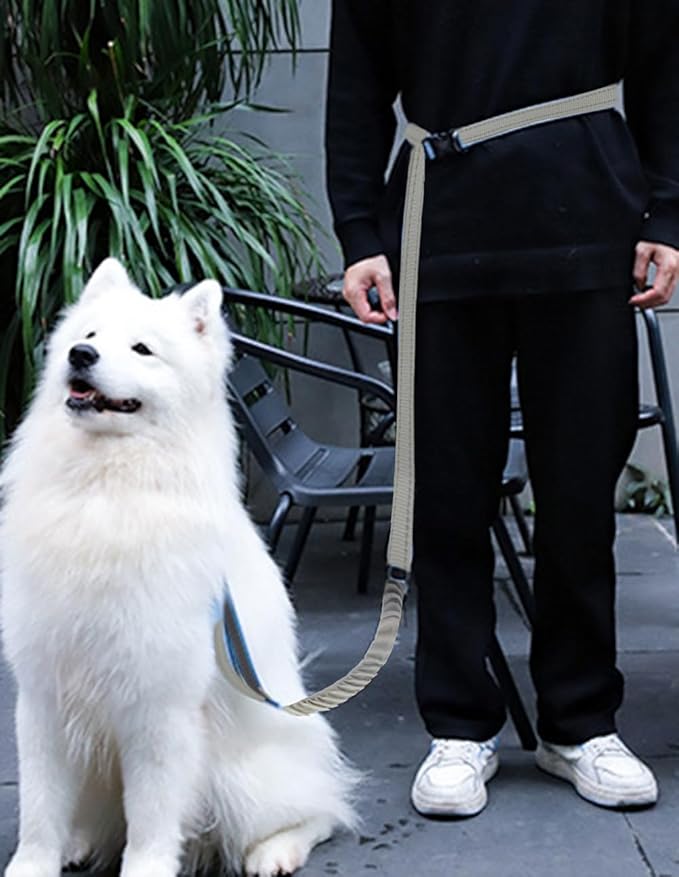 - Bungee Dog Leash: This heavy duty bungee dog leash is perfect for active dogs. Bungees design help to absorb shock from dogs, reduce back strain and the risk of getting hurt. Our waist leash is 57 inch and extends up to 90 inch, your dog can comfortably run in front of you. And the dog leashes for large dogs heavy duty with short handle, you can use it pull the dog back to safety fastly in case of emergency
