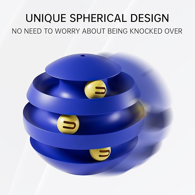 - Unique Spherical Design,No need to worry about being knocked over.With 3-Layer bell ball design,keeping cats close.spinning bell balls stimulates your cat’s senses. All of these entertain your cats and burn their energy!