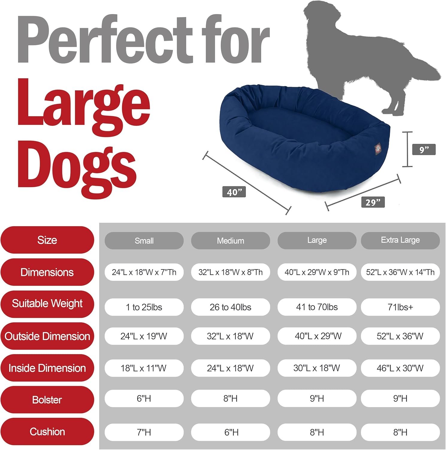 Majestic Pet 40 Inch Suede Shredded Memory Foam Mix Calming Large Dog Bed Washable 40 x 29 x 9 (Inch) - Cozy Soft Round Donut Dog Bed with Spine for Head Support - Pet Bed Navy