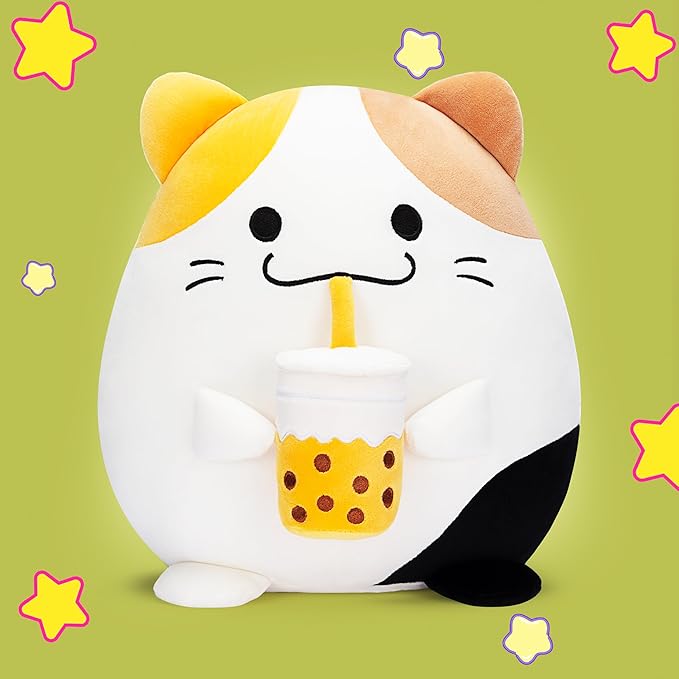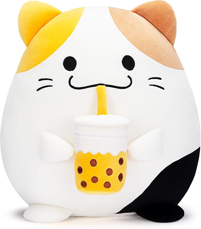 Original 12.5-inch Large Calico Cat Plush Pillow Stuffed Animal Toy,Big Size Cute Soft Fat Hugging Cuddle Huggable Plushie,Gift for Kids