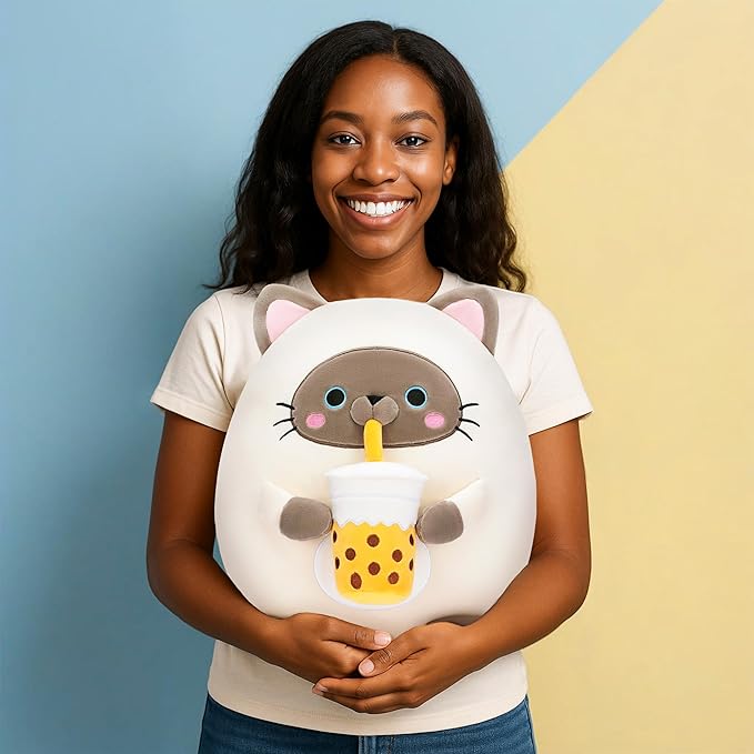 Original 13-inch Large Siamese Cat Plush Pillow Stuffed Animal Toy,Big Size Cute Soft Fat Hugging Cuddle Huggable Plushie,Gift for Kids