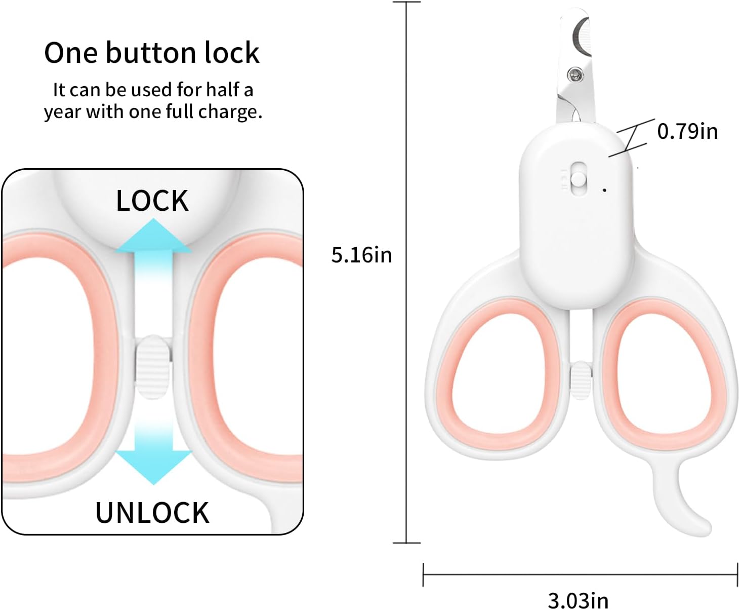 - Bright LED Light: Equipped with LED light at the end of this unique cat nail clipper. The light illuminates your pet's nails, allowing you to quickly and easily find where to cut, preventing damage to the blood vessels on your pet's nails