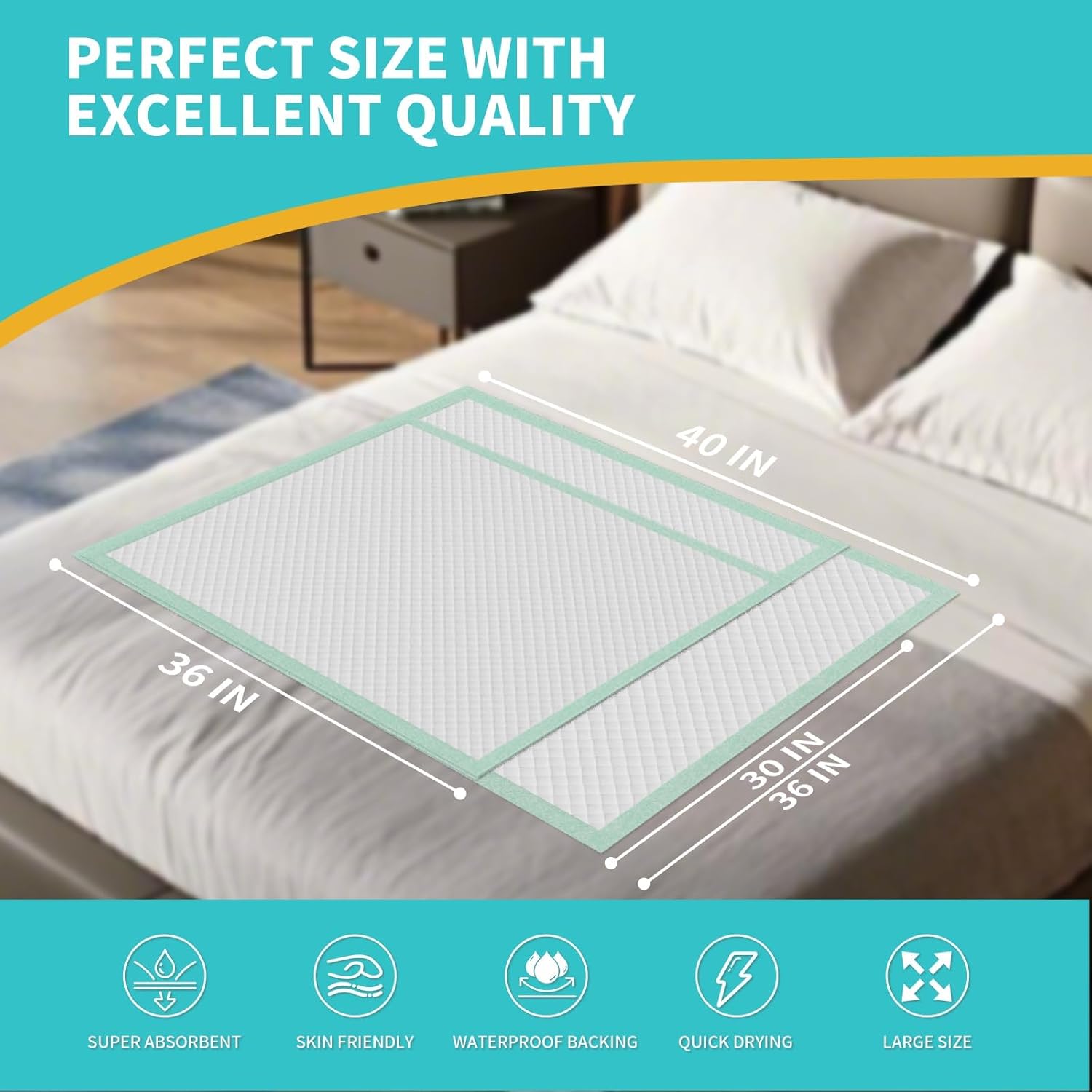 Disposable Bed Pads 40x36 Inch (40 Pack) - Extra Large, Super Absorbent Underpads for Adults & Pets, Waterproof Incontinence Pads, Mattress Protector [100x91CM]