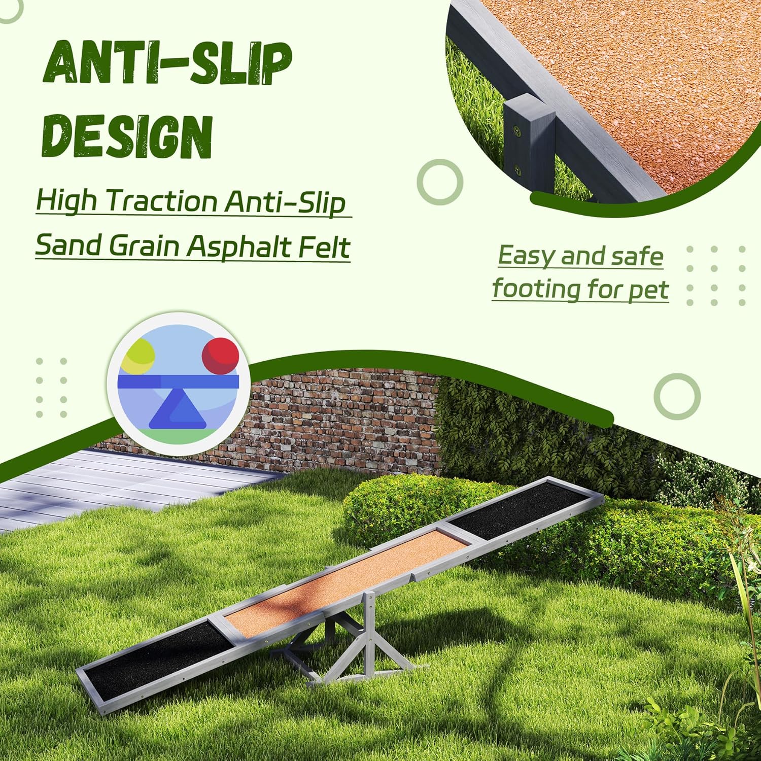 PawHut Wooden Dog Agility Seesaw for Training and Exercise, Platform Equipment Run Game Toy, Weather Resistant Pet Supplies, 83" L x 16" W x 14" H, Gray