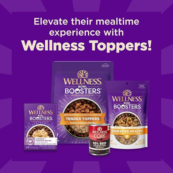 Wellness CORE+ Sensitive Skin & Stomach Dry Dog Food with Freeze Dried Pieces, Wholesome Grains, High Protein, Natural, Salmon & Rice Recipe, (4-Pound Bag)