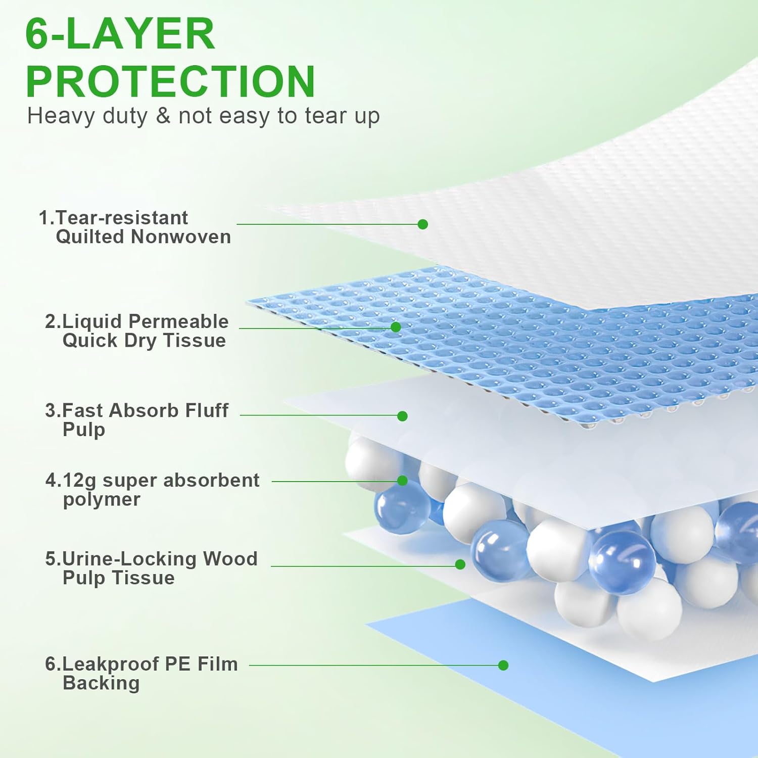 - Ultra Absorbent Polymer & Durable 6 Layers Protection: Super Absorbent Polymer And Fluff Pulp Hold More Liquid Up To 10 Cups(1000ml),With More Polymer And Fluff Pulp Than Others, These Dog Pads Extra Large Turn Liquid Into Gel Faster, Keep Your Floor Dry, And More Money Saving