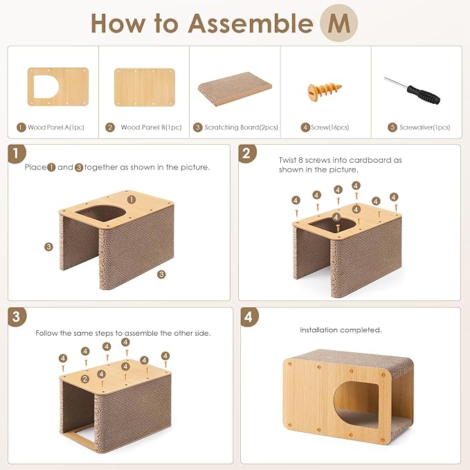 - 😺EASY INSTALLATION: Our cardboard cat house adopts a simple installation method and comes with instructions and necessary tools. The cat scratchers for indoor cats also provide an installation video so that you can install it quickly and easily.