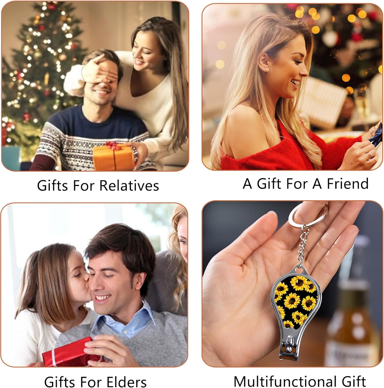Nail Clippers with Key Chain Cute Stainless Steel Nail Cutter with File Professional Toenail Clipper for Men Multifunction Toenail Clipper 2 Pack Nique Cutter for Adult(Sunflower)