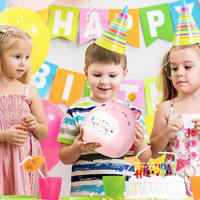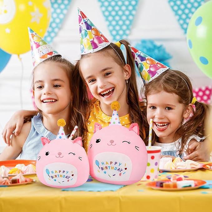 - Unique Cat Design:The unique birthday cat plush pillow, wears a birthday hat, two bright ears, one open and one closed eye. The belly is embroidered with the words "Happy Birthday", and there are balloon love embroidery elements fused together to add a unique charm to this birthday cat plush