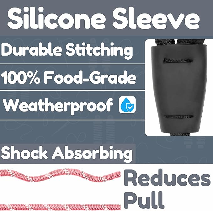 - All-Purpose Dog Training Leash - This 6’ long leash for dogs is ideal for walking, running, training, and outdoor hiking. The lockable metal carabiner clip ensures a secure connection, and the durable silicone clamps reinforce pull resistance, which are important for standing up to strong tugs and daily wear from active companions.