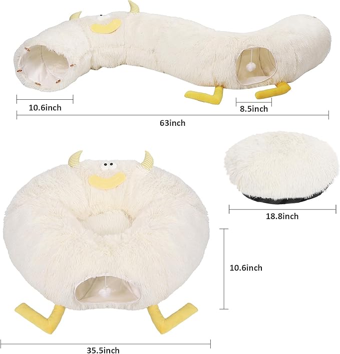- Versatile Cat Bed Cave: Petrendy cat tunnel bed combines a cat bed, 2 cat tunnel and 2 cat cave all in one, which can be used as a long round cat tunnel, a cat bed for resting or a peekaboo cat cave for indoor interaction.