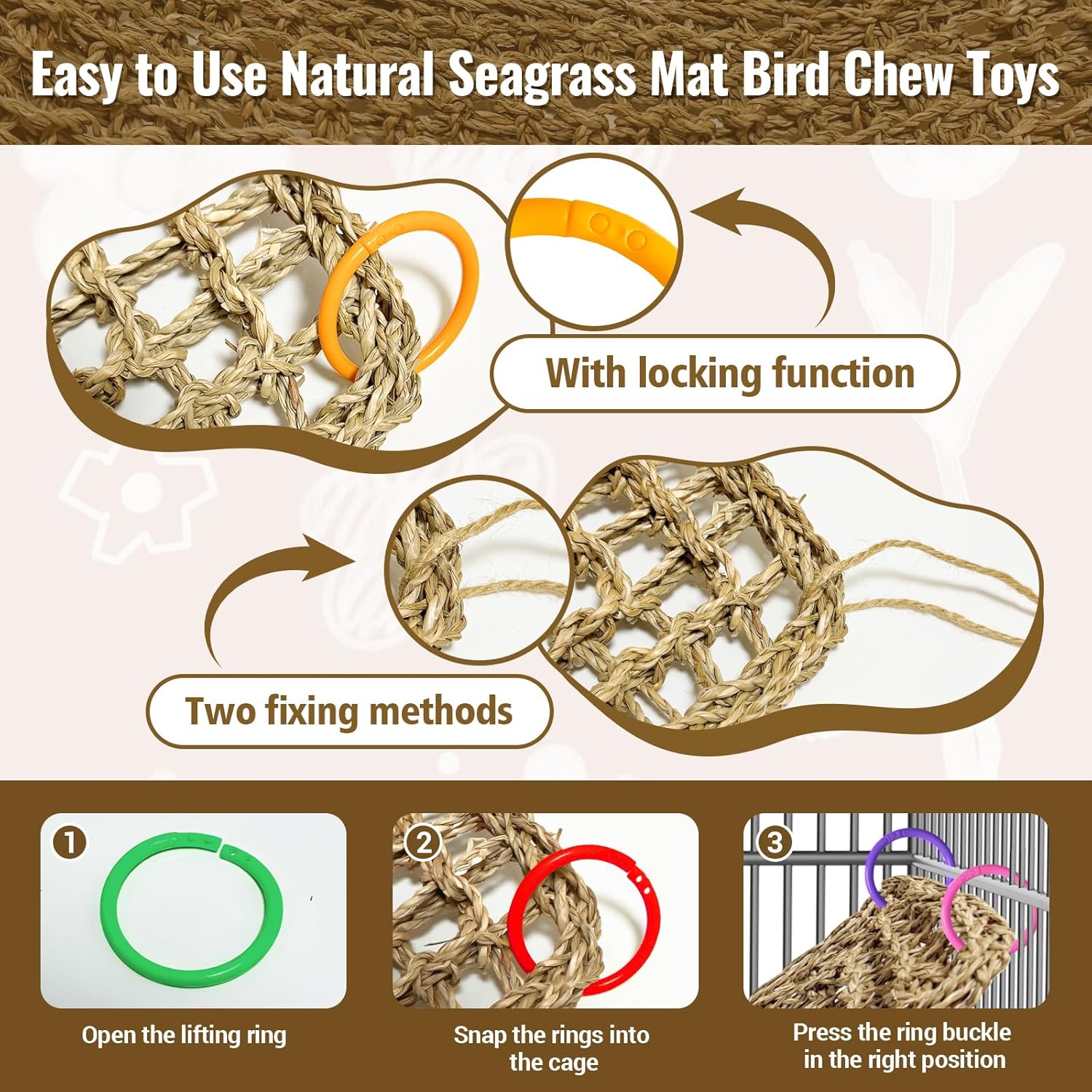- Natural Material: Seagrass mat for birds is hand-woven from natural seagrass, which is sturdy and durable. Provides endless entertainment while keeping the birds at ease and safe