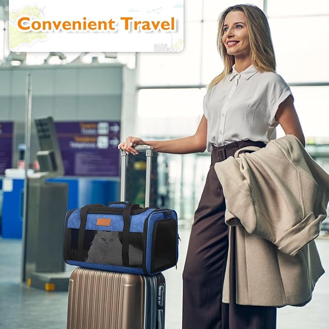 PETUX Pet Carrier Airline Approved, 17"x11"x9.5" Portable Cat Carrier Soft with Anti-Scratch Mesh for Small Cats up to 12 lb, Top Open Breathable Dog Carriers for Puppy up to 10 lb (Blue)