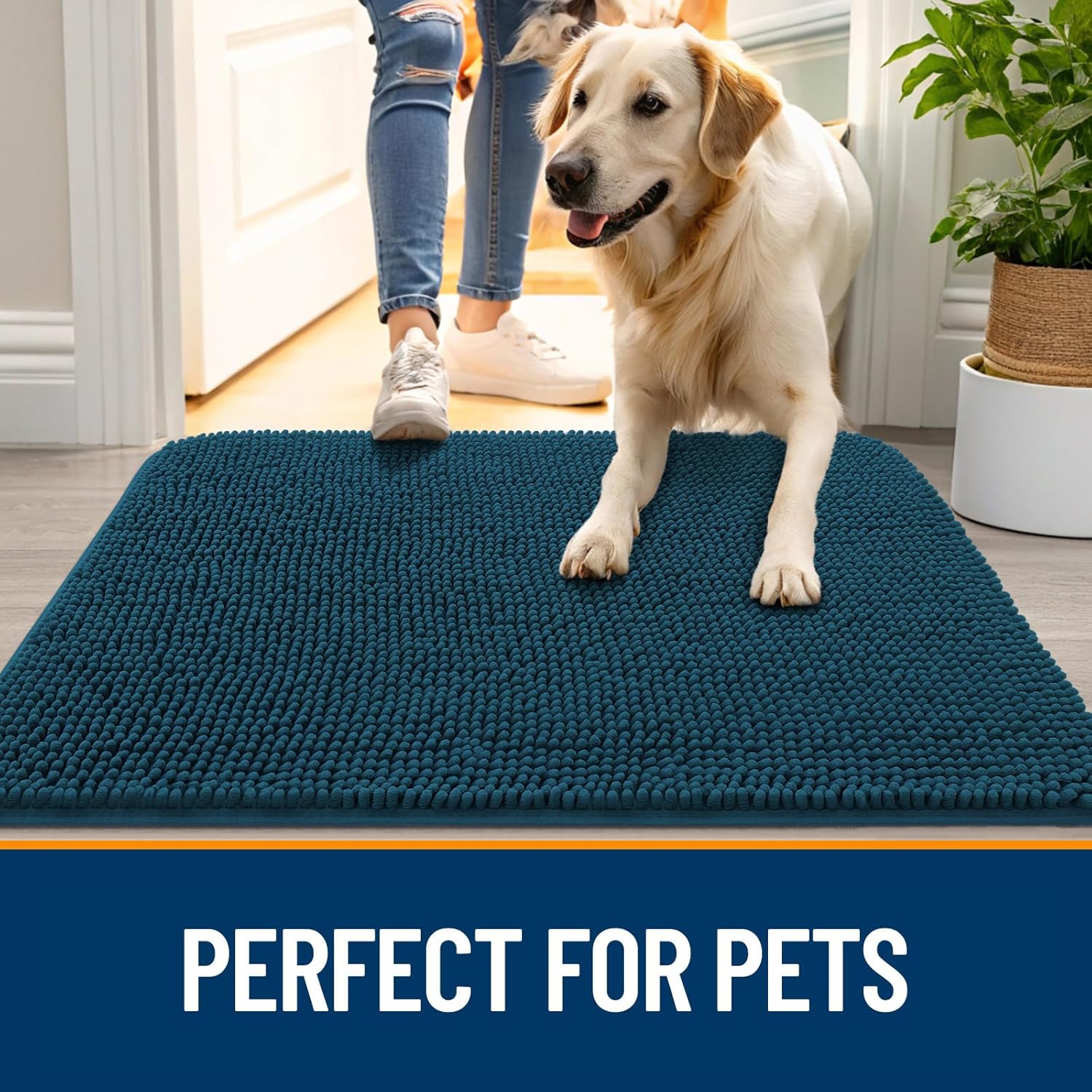 OLANLY Dog Door Mat for Muddy Paws 47x17, Absorbs Moisture and Dirt, Absorbent Non-Slip Washable Doormat, Quick Dry Chenille Mud Mat, Entry Indoor Entryway Carpet for Inside Floor, Atlantic Blue