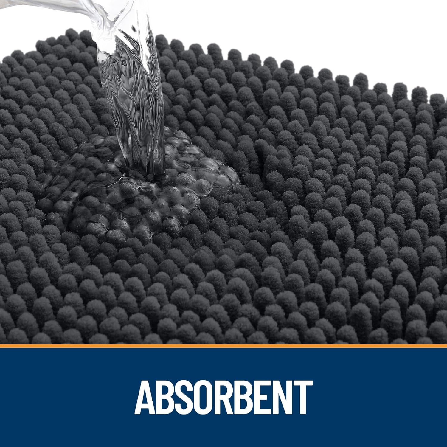 OLANLY Dog Door Mat for Muddy Paws 47x20, Absorbs Moisture and Dirt, Absorbent Non-Slip Washable Doormat, Quick Dry Chenille Mud Mat for Dogs, Entry Indoor Entryway Carpet for Inside Floor, Dark Grey