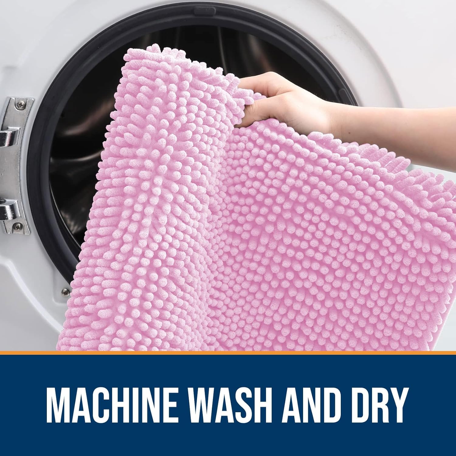 OLANLY Dog Door Mat for Muddy Paws 59x20, Absorbs Moisture and Dirt, Absorbent Non-Slip Washable Doormat, Quick Dry Chenille Mud Mat for Dogs, Entry Indoor Entryway Carpet for Inside Floor, Pink