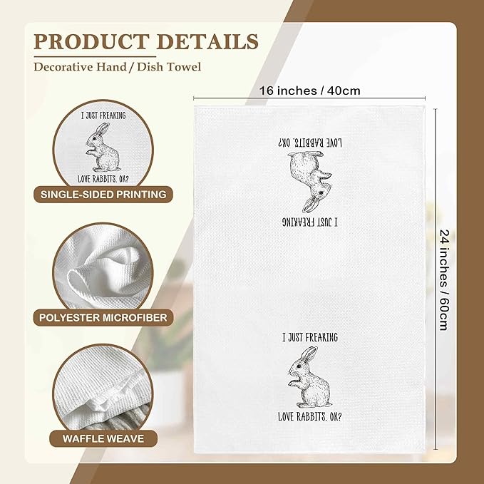 I Just Freaking Love Rabbits Kitchen Towels Decorative Gifts for Rabbit Lovers 16x24, Rabbit Bunny Dish Towel Cloths Dishcloths Tea Towel, Easter Bunny Bathroom Kitchen Hand Towel Decor