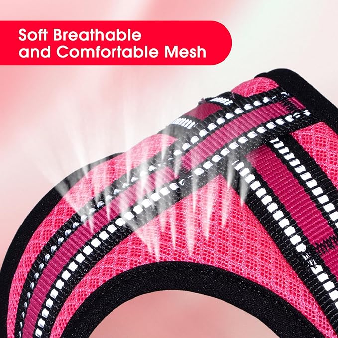 Wisedog Ajustable Mesh Breathable Dog Harness - Reflective Webbing, Lightweight No Pull Harness with 3 Fast-Release Buckles for Dogs Walking, Running and Outdoor Adventures, Pink M