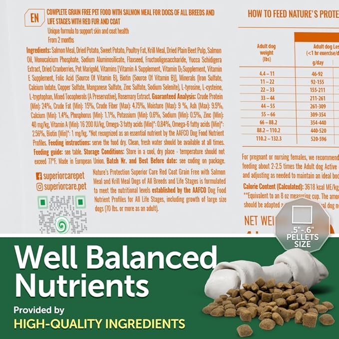 Nature's Protection Small & Large Breed Dry Dog Food Salmon - High Protein, Grain Free Tear Stain Diet - Dog Kibble for Puppy & Adult Dogs with Red Fur (Superior Care - Salmon, 8.8 lb)