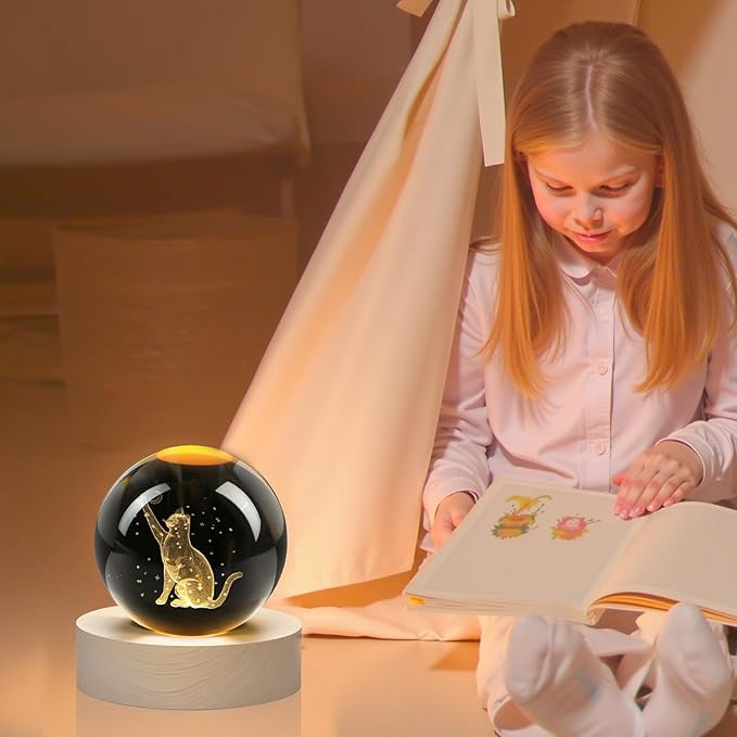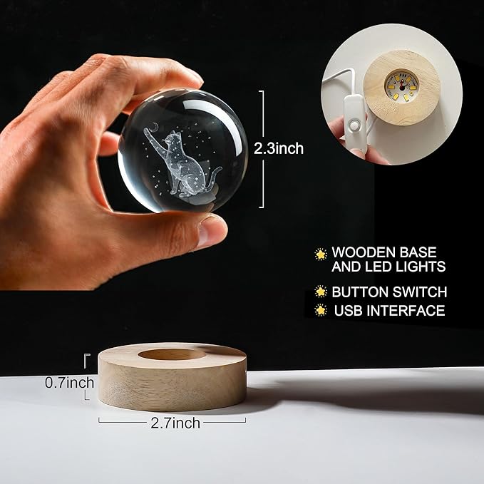 - Illuminate your space with the warm white light provided by the luminous base of the 3D Carved Cat Crystal Ball