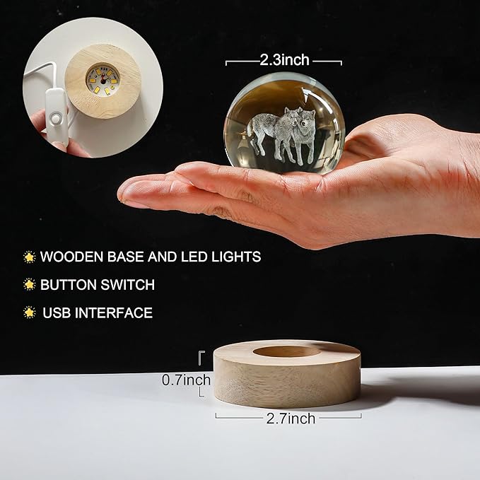 - This crystal ball is made of high-quality K9 crystal as raw material. The 3D carved wolf image inside is clear and durable, and the image will never lose its luster.