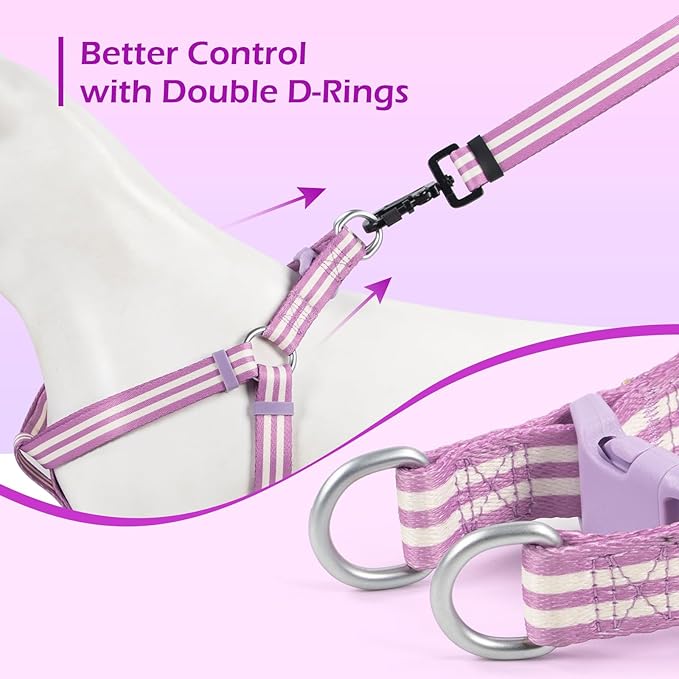 Stripe Step in Dog Harness for Small Dogs, Freedom Nylon Dog Halter Vests, Lightweight and Escape Proof Puppy Harness, Quick Fits for Small Medium and Large Dogs, Purple S
