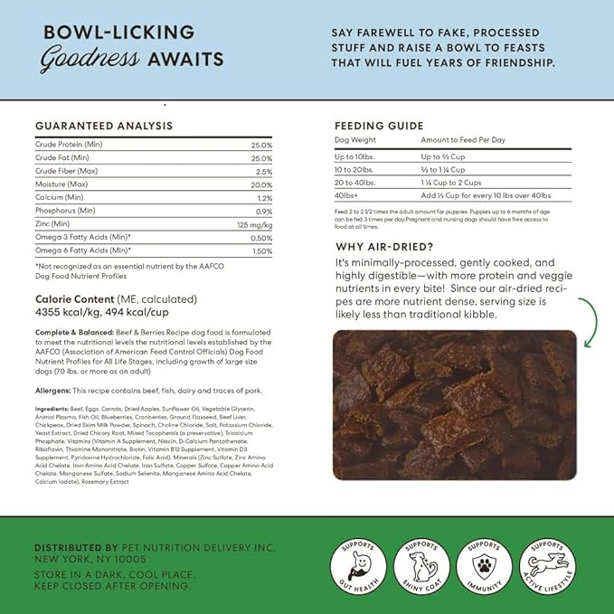 - Packed with Superfoods - Our dog food is air-dried at a low temperature for longer to maintain optimal nutrition, freshness and flavor, with ingredients like beet powder and spinach to support good vision and promote a shiny coat for your furry friend