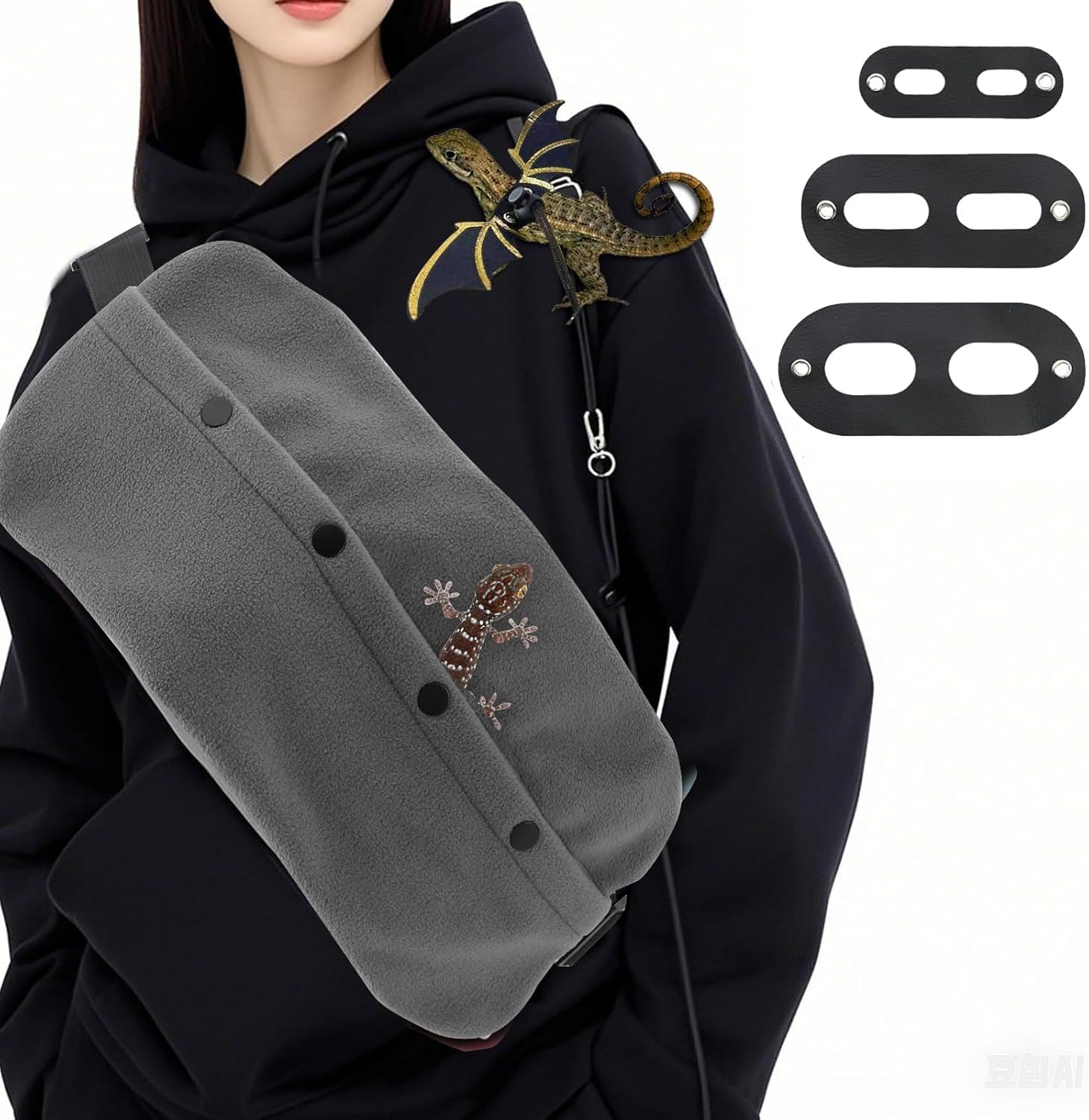 Lizard Bearded Dragon Leash and Harness Set, Bearded Dragon Leash and Carrier, Adjustable Harness with Leather Wings and Sling Bag,Reptile Small Pet Backpack for Outdoor Travel Walking (Gray)