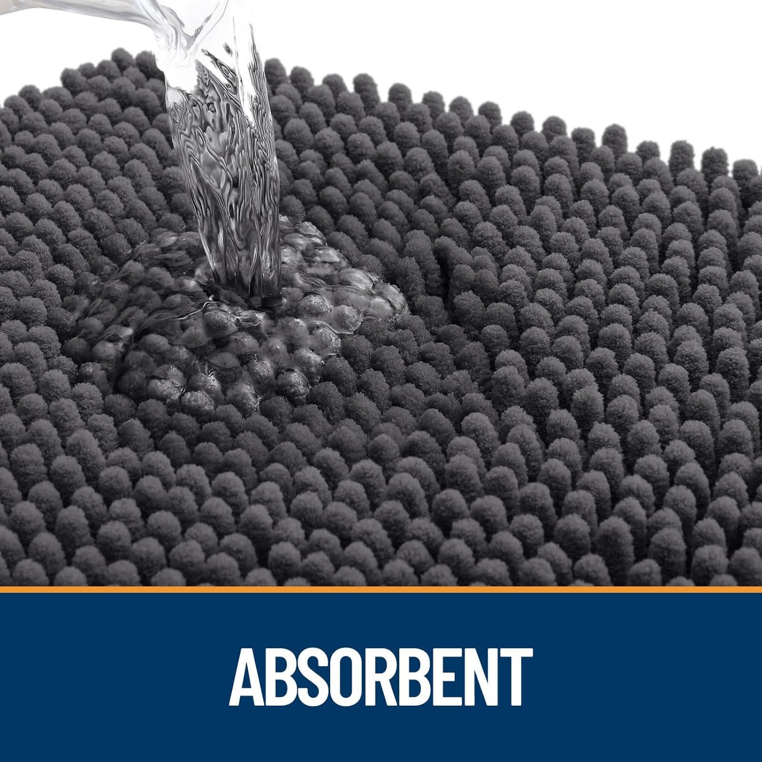 OLANLY Door Mat for Muddy Dog Paws 36x24, Ultra Absorbent Chenille Mud Doormat with Paw Print Design, Non-Slip Washable Doormat for Indoor Entryway, Quick-Dry Pet Bed Mats for Dirty Dogs, Dark Grey