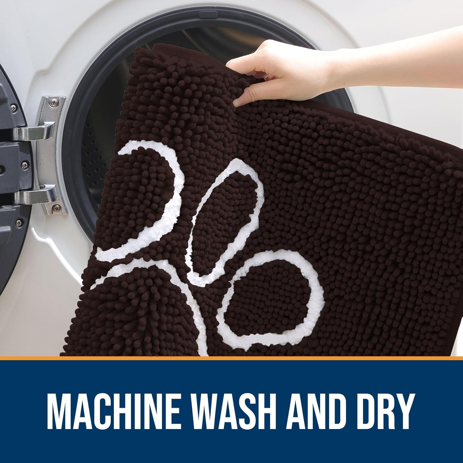 OLANLY Door Mat for Muddy Dog Paws 47x32, Ultra Absorbent Chenille Mud Doormat with Paw Print Design, Non-Slip Washable Doormat for Indoor Entryway, Quick-Dry Pet Bed Mats for Dirty Dogs, Brown