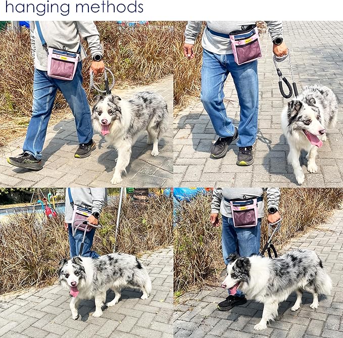 - 5.Durable Tech Material: Raisingwell's dog treat training pouch is made from durable, washable, and non-toxic fabric. Notably, its waterproof lining solves the problem of difficult-to-clean interiors of training bags, making it a great choice for your dog treat bag or dog treat fanny pack.